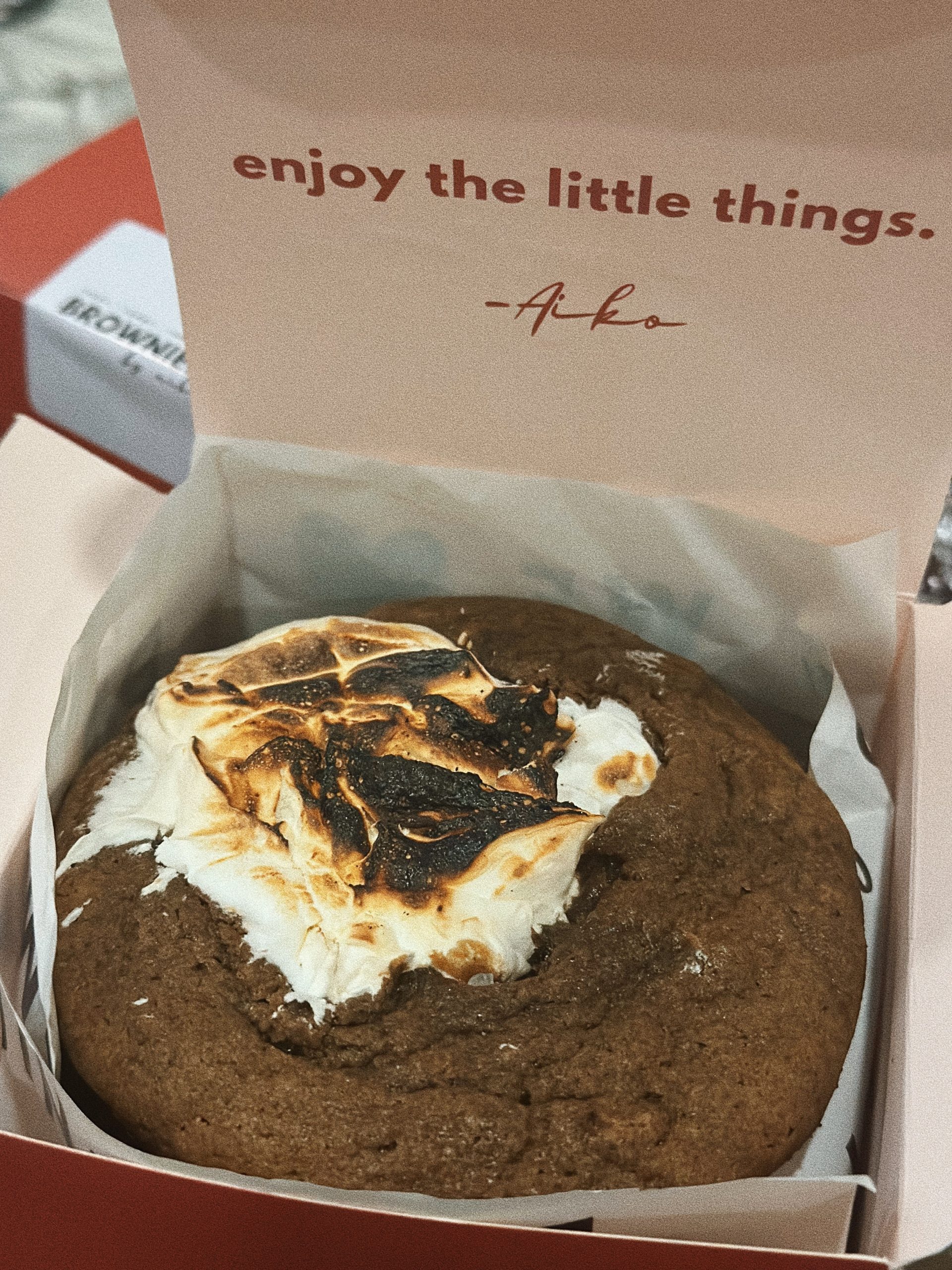Vanilla-base ice cream with marshmallow fluff and biscuit crumbs